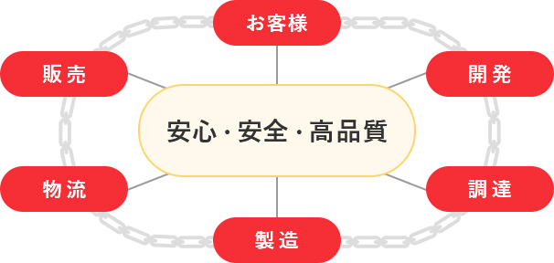 原料調達部門や製造部門と協力しながら、開発段階で品質管理基準を定め、安全な商品作りにつなげていきます。