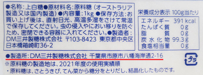 「期限」の無い砂糖に製造日のみを記載すると、「期限」と混同する可能性があることから製造日の表示は控えています。