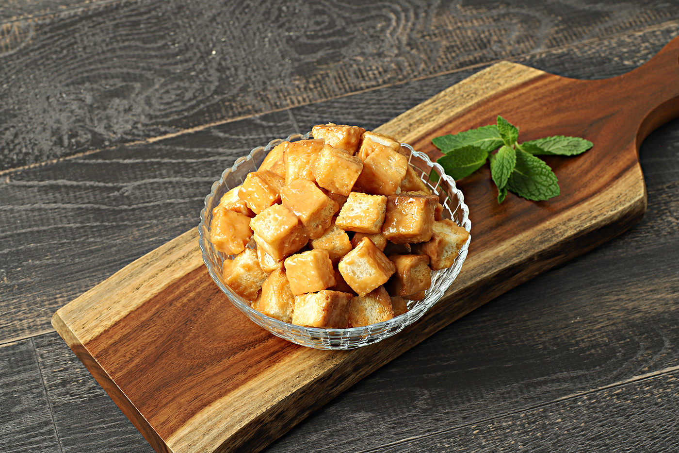 食パンは一口大にカットし、180℃のオーブンで15分焼く。
