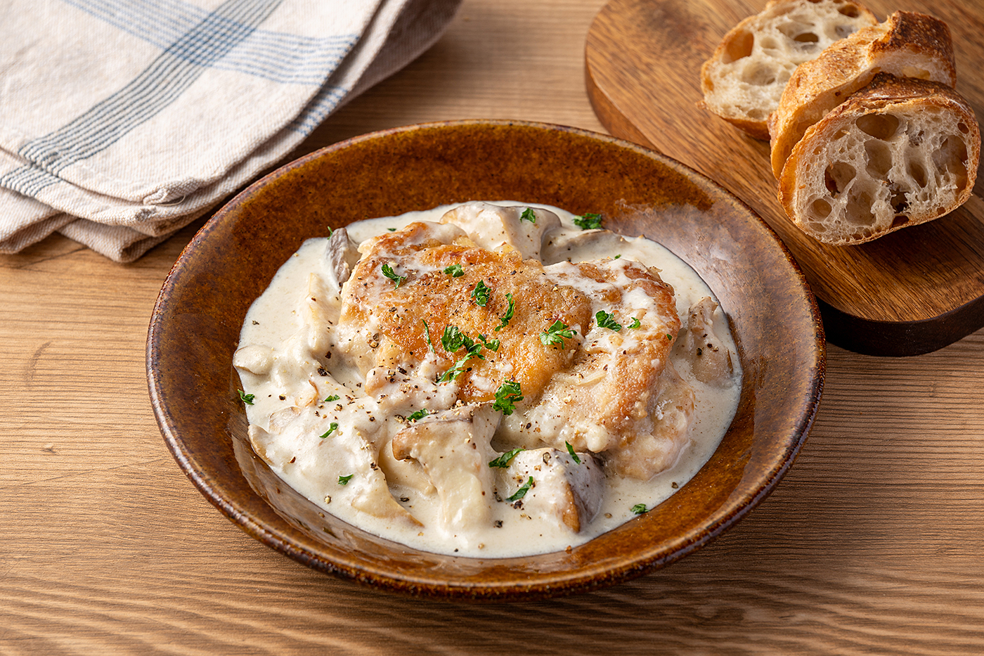 ワンパン鶏ときのこのクリーム煮込み