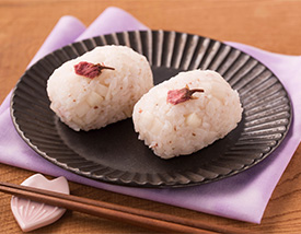 桜の塩漬けにお砂糖の甘味をプラスした春色のおにぎりです。